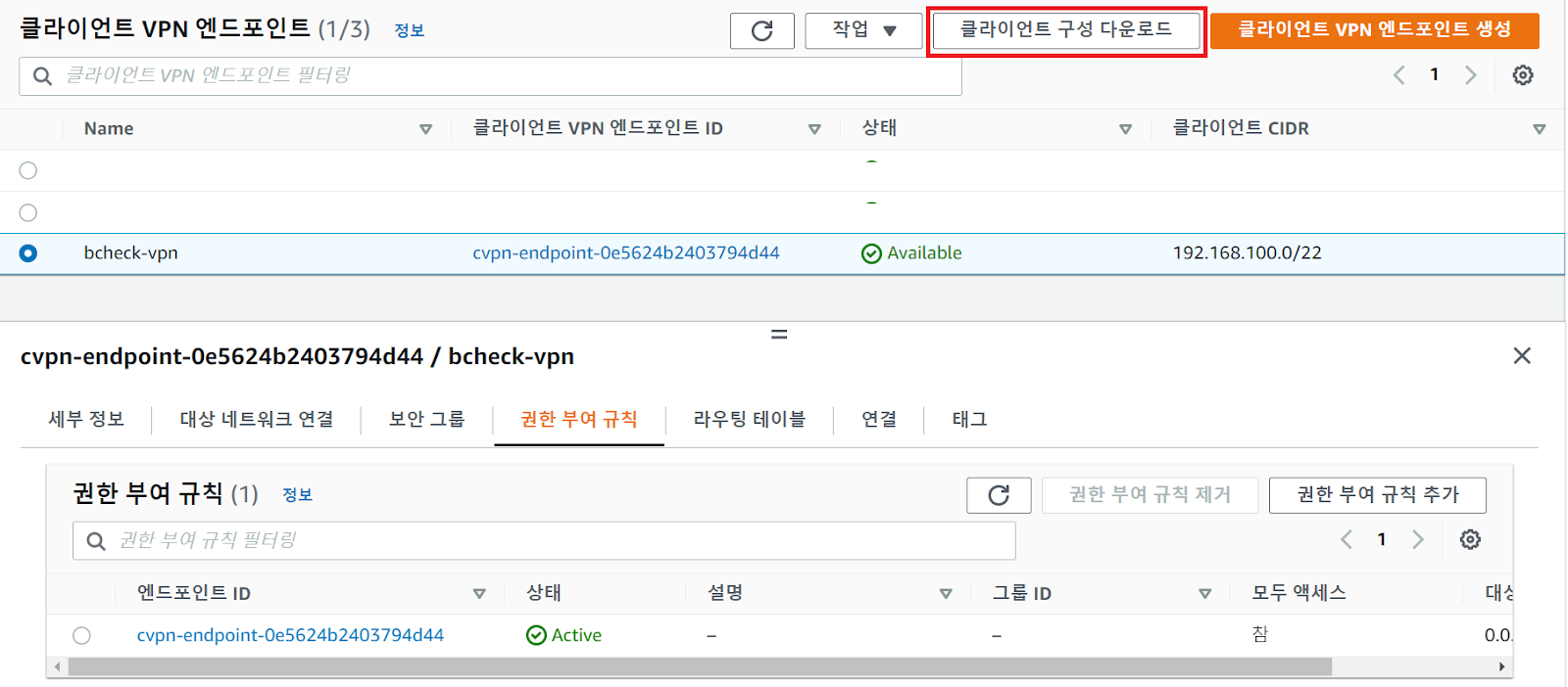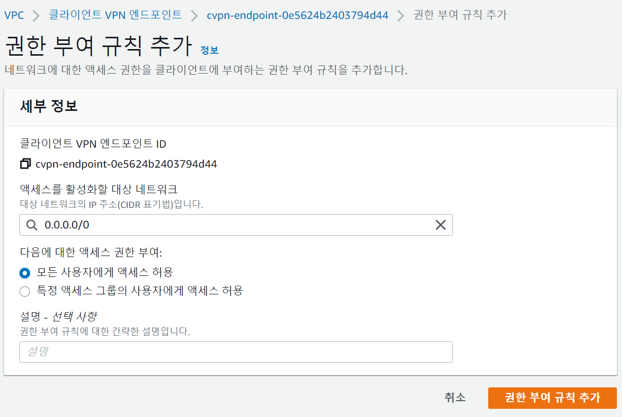| [Client VPN 구축] 2. 클라이언트 VPN 엔드포인트 생성 (0) | 2022.04.29 |