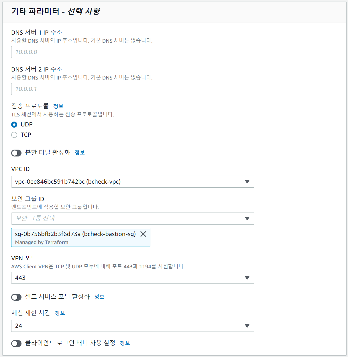 | [Client VPN 구축] 3~6. 클라이언트 설정 및 연결 (0) | 2022.04.29 |